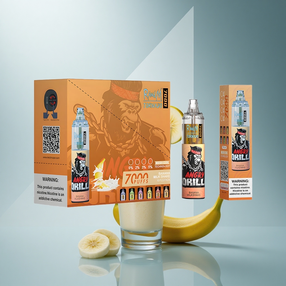 RandM Fumot Tornado 7000 Puffs Бананов млечен шейк с мрежова намотка и регулируем въздушен поток