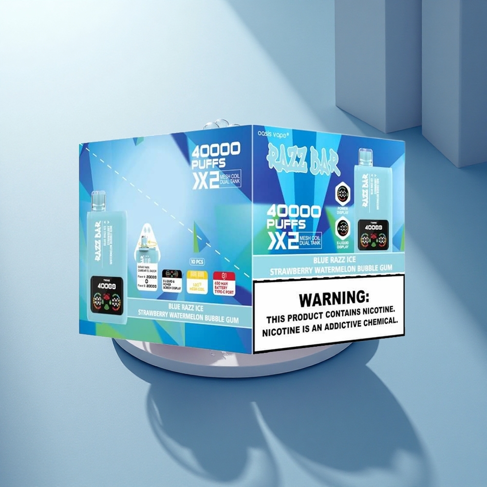 Razz Bar 40000 Puffs Синьо Малиново Ледено-Ягодово Диня Дъвка с Двойна Мрежеста Намотка и Тип-C Порт